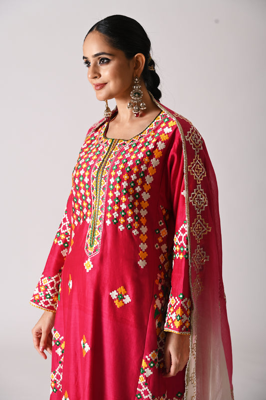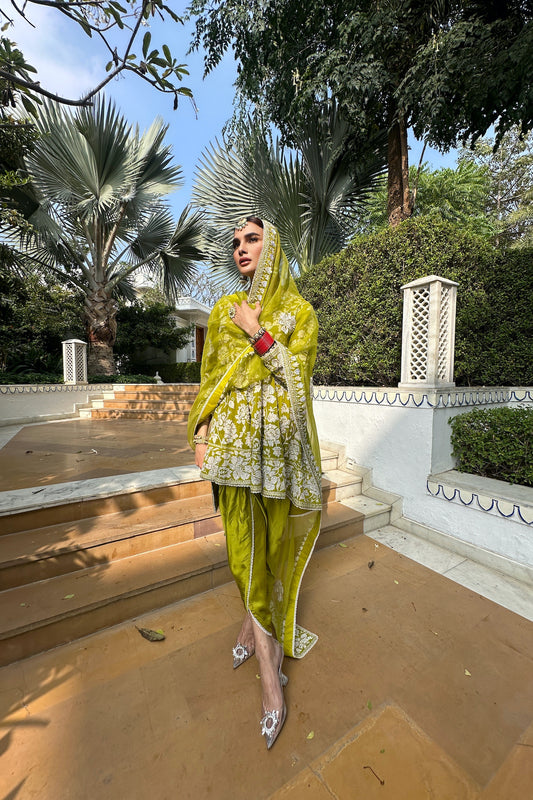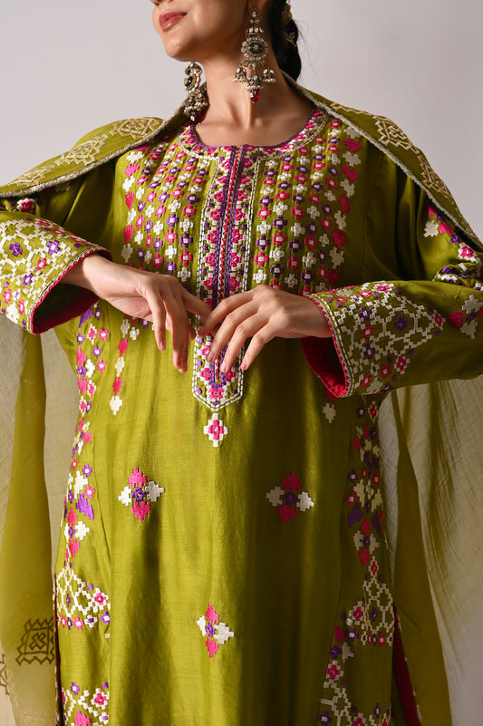 Patola - Side-Kali Kurta Set - Mehndi Green