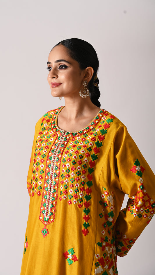 Patola - Side-Kali Kurta Set - Mustard Yellow