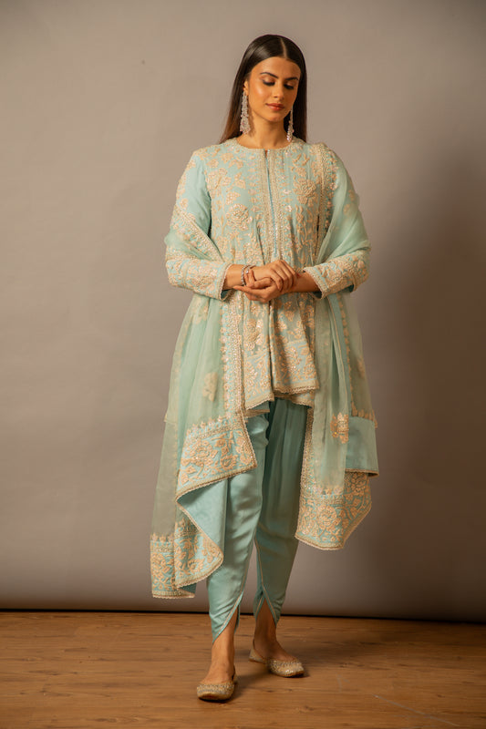 Nazrana - Flower Jaal Kalidar Set - Powder Blue