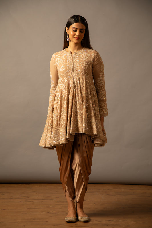 Nazrana - Flower Jaal Kalidar Set - Beige
