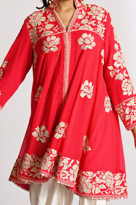 Nazrana - Flower Jaal Baby Doll with Tulip Pants - Red